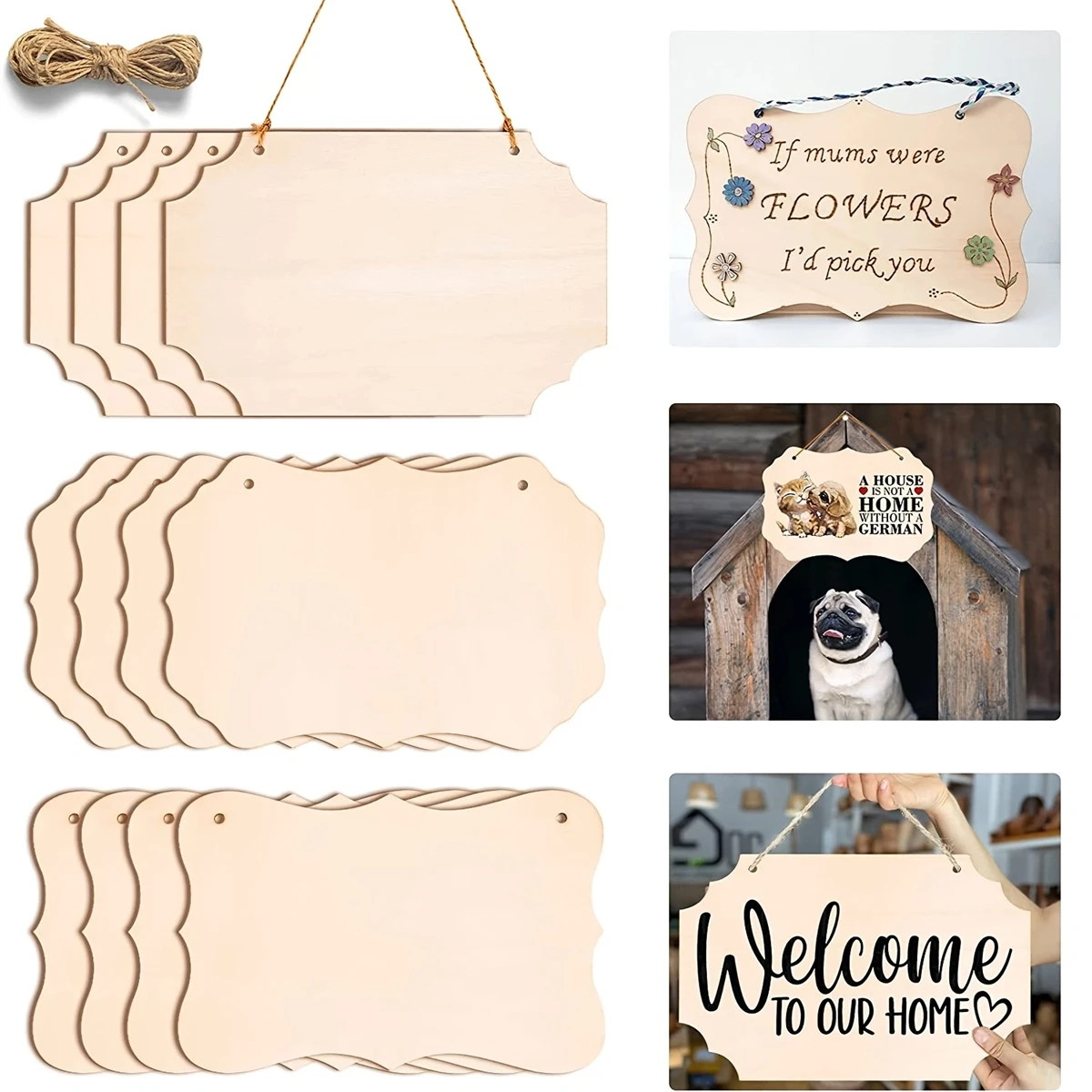 12PCS Unfinished Rectangle Hanging Signs, 8.8×5.7In Wood Slices, For DIY Crafts, Door Hangers,Painting, Writing, Wood Burning