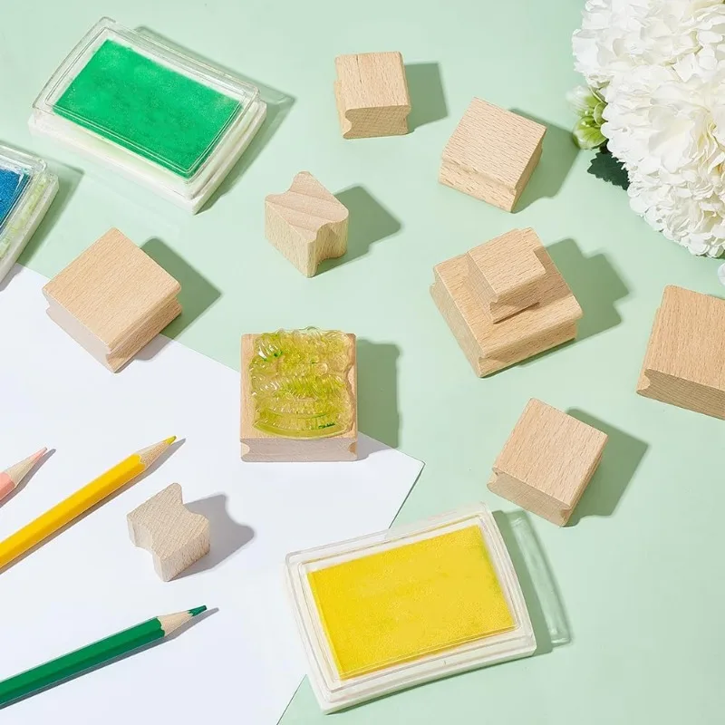 20Pcs Blank Hard Wood 5 Styles Wood Tiles Square Grooved Wood Blocks for Stamp Carving Rubber Stamp Mounts for Crafts Laser