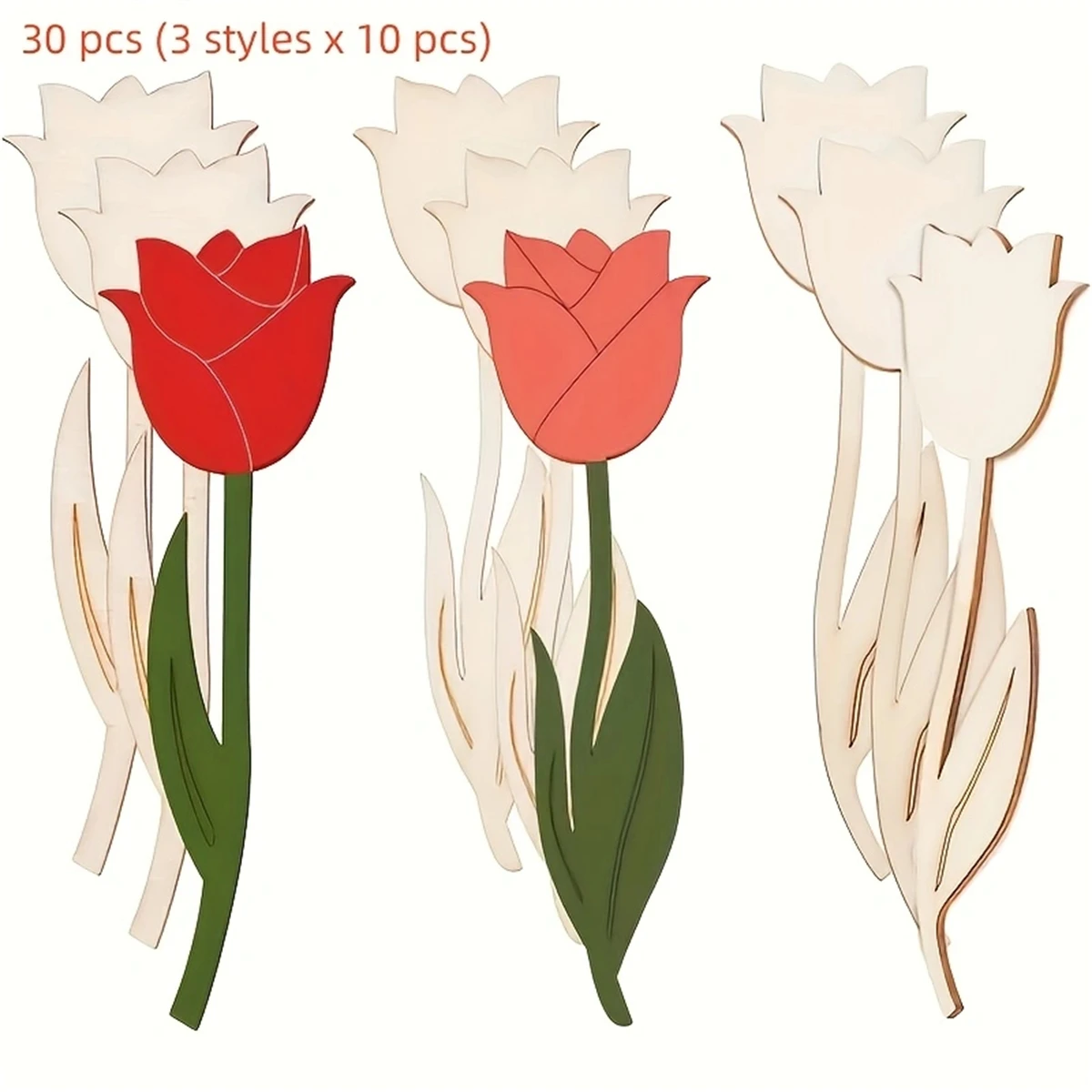 30pcs Wooden Rose Flower Shapes For DIY Crafts – Versatile Hanging Decorations For Weddings, Birthdays & Holidays